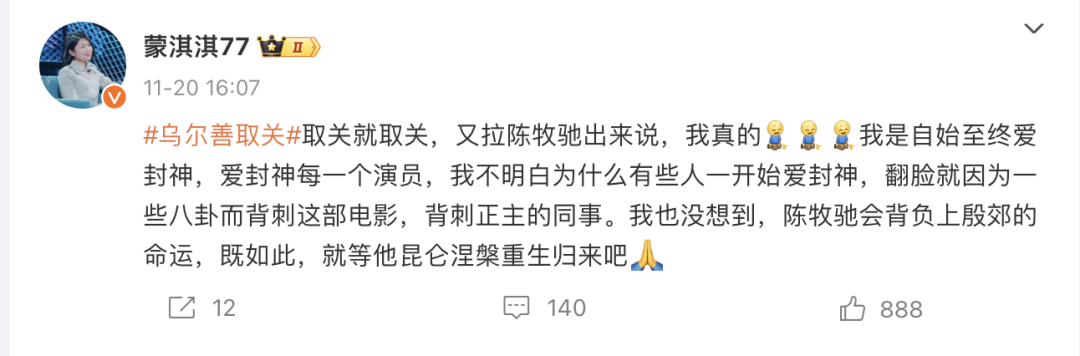 而吃不到女性主义流量红利的蒙淇淇,近期也开始频繁发布影视相关的内容,除了正常分享自己对电影和剧集的看法之外,甚至也围绕热点事件“唱反调”,虽然评论不算友好,但确实流量和关注有了。