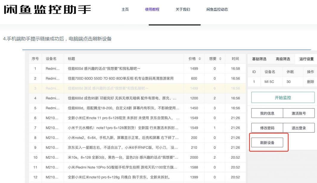 闲鱼监控助手通过电脑端程序控制,手机端助手接到指令后会模拟人工刷新操作,将监控到的商品数据返回到电脑界面。实现闲鱼监控,闲鱼秒拍,和闲鱼扫货。有些监控团队从2016年开始从事闲鱼软件的开发工作,团队人员积累了大量的经验。这是普通用户无法在与专业团队抗衡的技术鸿沟。
