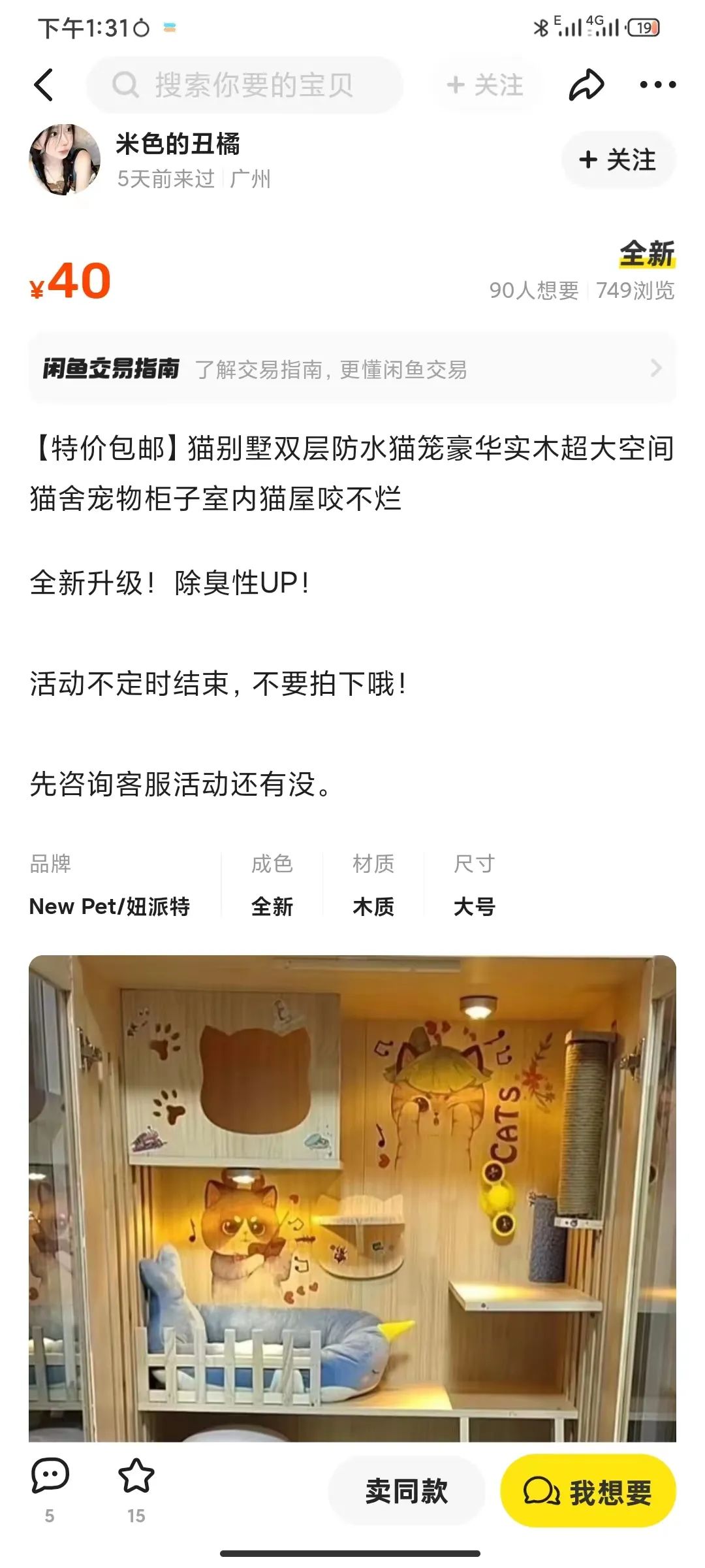 第一个遇到的师傅是闲鱼广场里,一个猫笼卖的不错的卖家,从此打开了新世界。
