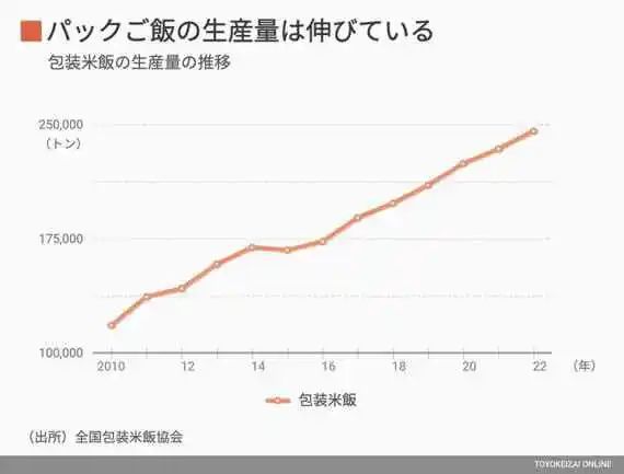 速食米饭让不少企业找到了增长机会,进一步带动了大米加工产能的增长。如佐藤食品标志性产品“新泻县越光米”的销量在2011年至 2021年的10年间大约翻了一番,并且该公司目前正在投资约45亿日元,扩建一家专门生产包装大米的工厂的新生产线,目标是在2024年投产时确保年产4亿份大米的产能。