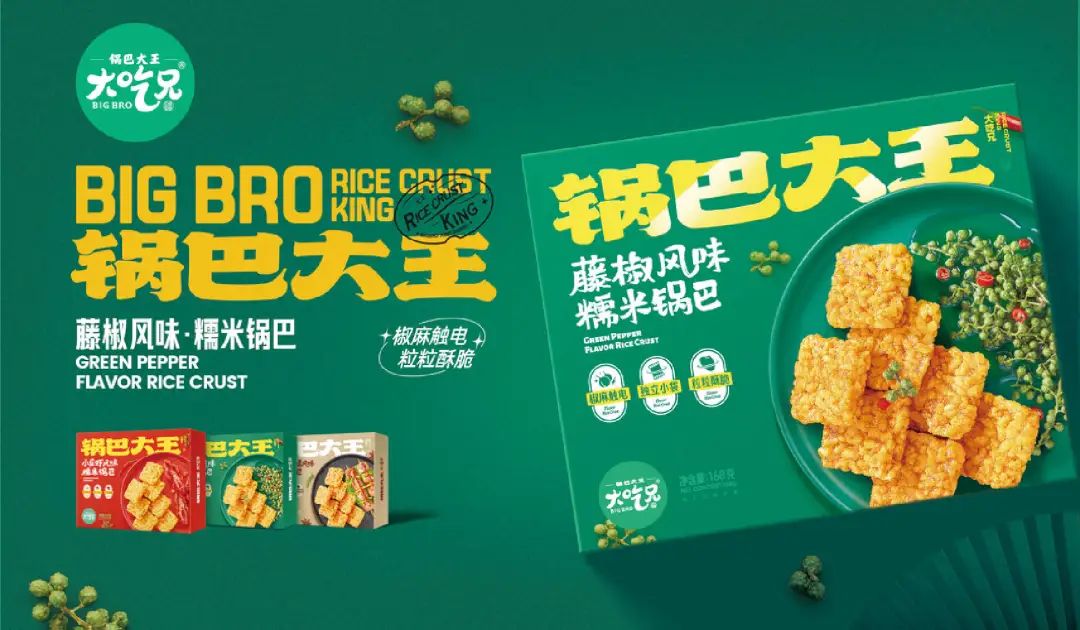 基于用户年轻化的特点,大吃兄在原味锅巴上进行了风味创新,将高认知的风味和锅巴结合,陆续开发了触电藤椒锅巴、小龙虾锅巴、螺蛳粉锅巴、白桃乌龙锅巴等多种新口味产品,切合了年轻消费群体的喜好倾向,将锅巴“潮流化”。