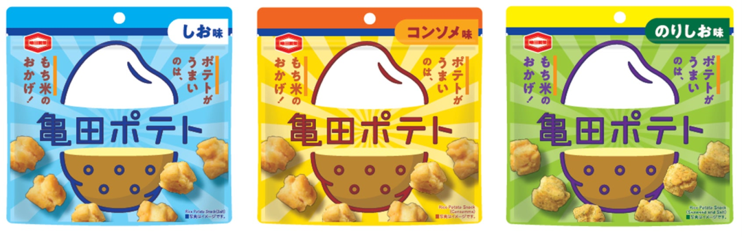 龟田米薯块(亀田ポテト)就是近年创新型米果的代表新品之一。龟田自称,年轻人不买米果,却买薯片,这款产品正是基于对米的爱和对土豆的羡慕甚至嫉妒而诞生的。