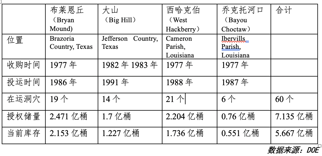 当前,美国SPR共有60个盐穴储油,集中分布于墨西哥湾沿岸,共储备5.667亿桶石油,储备品种以高硫原油为主。