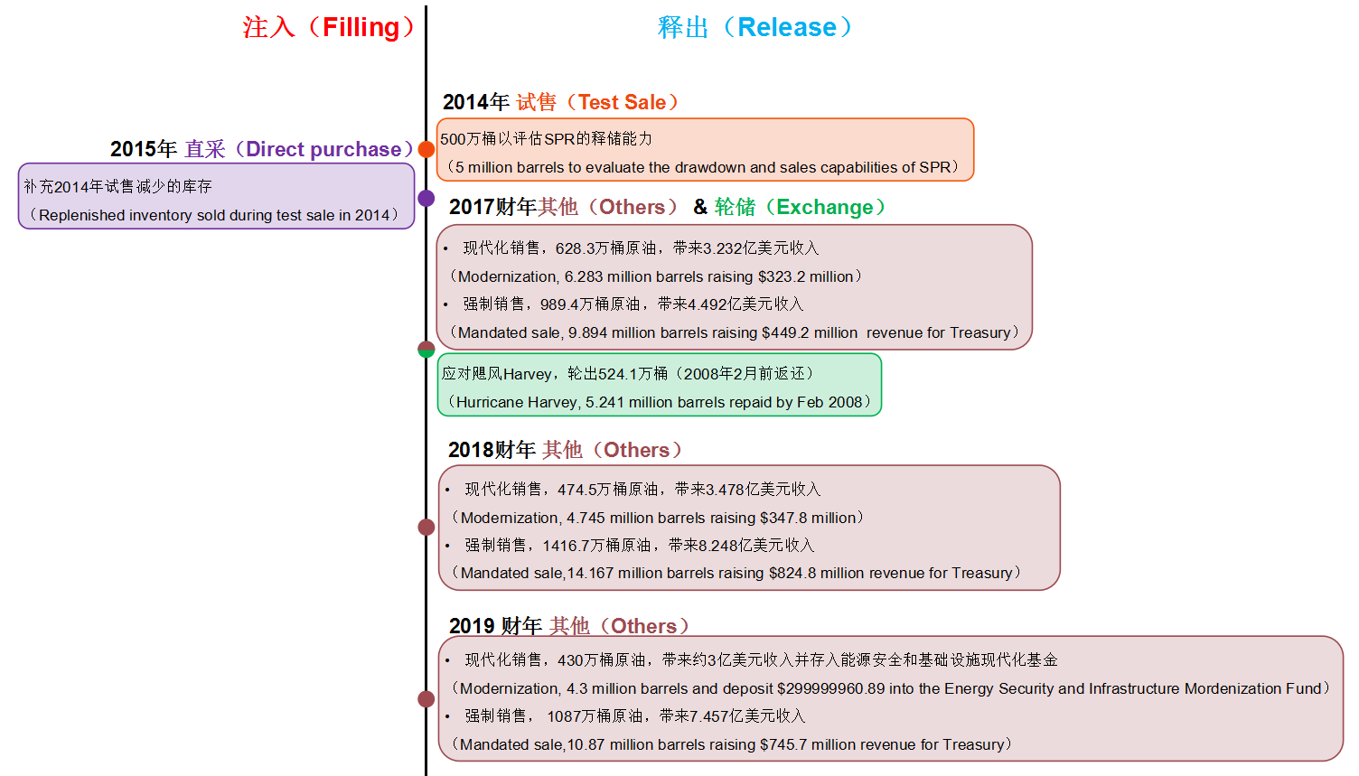 美国SPR建设于1975年,其基础设施、系统已运行40年有余,面临老化、退役等问题,这期间世界石油市场也发生了巨大变化。2015年,美国国会意识到现行的SPR系统已无法发挥其最优效益,于是他们提出SPR现代化计划(SPR modernization program),该计划下出售的SPR收入都将存入能源安全和基础设施现代化基金(Energy Security and Infrastructure Modernization Fund,即ESIM Fund),其中部分资金将被用于延长现有基建的使用寿命,进行新基建的建设以提升SPR的运行能效。