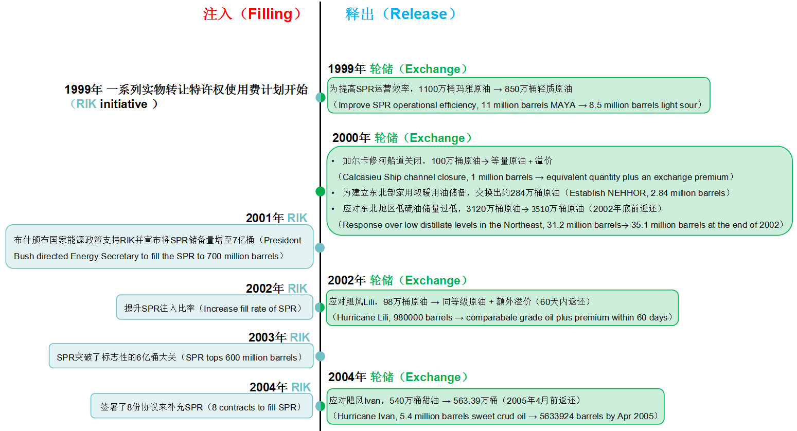 轮储这一模式,具有期货交易的特性。早在1996年,美国因ARCO公司的管道被蜡质原油堵塞而需紧急释储时,就采用了轮储的方式。彼时,不仅通过轮储达到了应对紧急情况的目的,协议还约定了ARCO于六个月内向美国政府返还同质同级原油,特别指出的是,ARCO公司还将为此支付一笔费用,该费用包含了租赁石油的期价、现价之差,这在何种市场中都是一笔利大于弊的交易。ACRO公司最大程度减小了管道堵塞带来的经济损失,美国政府在缓和国家能源安全的前提下,获取了额外收益。