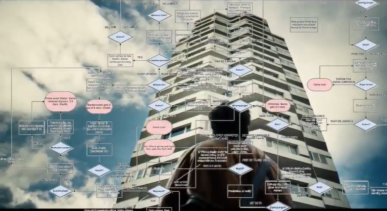 互动剧本身在编写中需要安排众多支线,有的是借由问题解决的场景分裂出来,例如《古董》里观众引导潘粤明角色解开重重机关,有的是借一些看似无关紧要的物品选择来分裂路径,在《黑镜》中有许多。