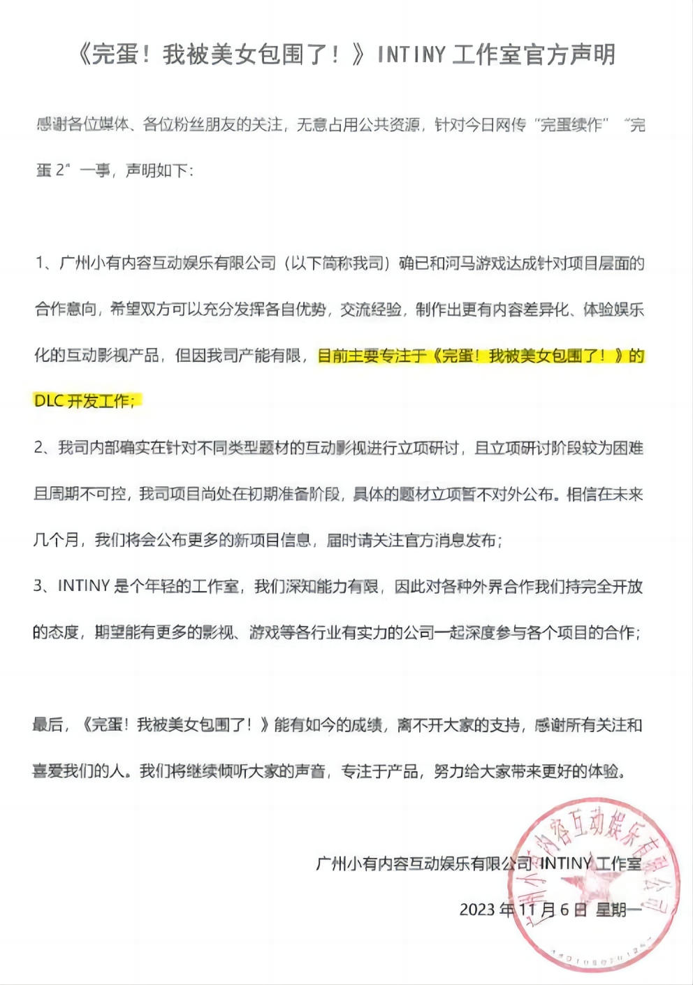 但游戏制作方或许只是恰巧摸对了脉门,对社会心理缺少更深入的研究。河马游戏一官宣正与INTINY合作,蓄力开发针对女性用户的“帅哥版本”,在网上立刻遭到一众女玩家吐槽,INTINY工作室发出声明模棱两可地“辟谣”。