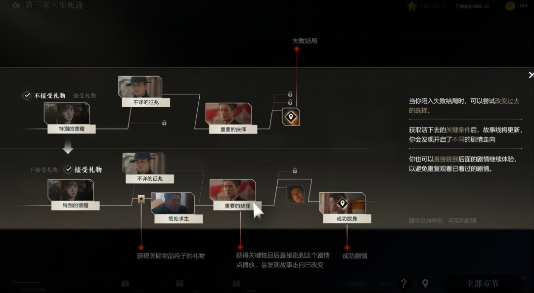 可以再无交叉,也可以在某个节点再次交汇,导向不同的结局版本。