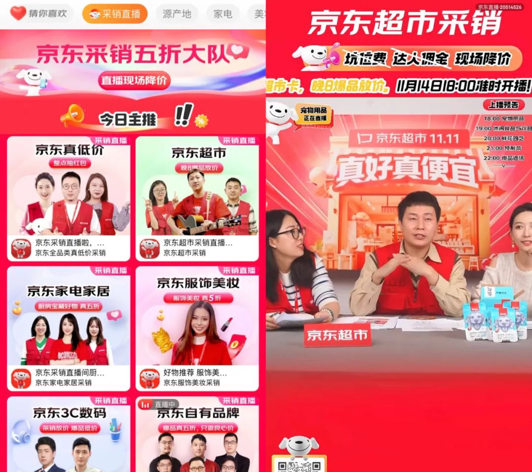 今年10月25日,京东采销直播间横空出世,这个无达人佣金、无套路、无坑位费的直播间上线得十分临时,甚至宣传页面都做得相对粗糙。京东的采销人员穿着京东的红色马甲出现在直播间,仿佛一场品牌内购会。但并不妨碍消费者因为直播间低廉的价格而光顾,京东采销直播间成功将流量做了上去。