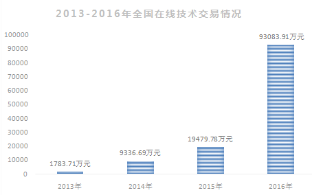 从2013至2016年,在线技术交易额持续爆发性增长。