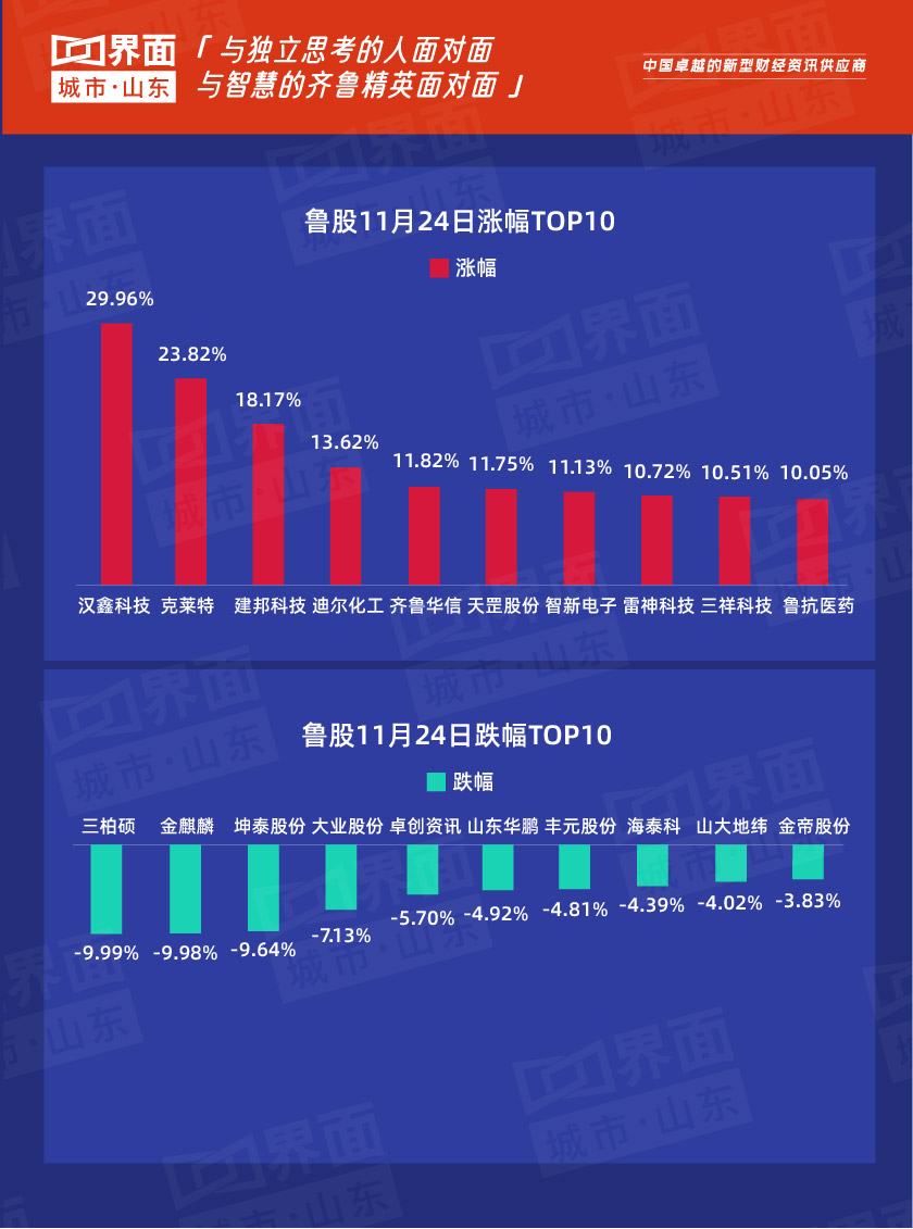11月24日,山东90只个股上涨,5股持平,212只下跌。