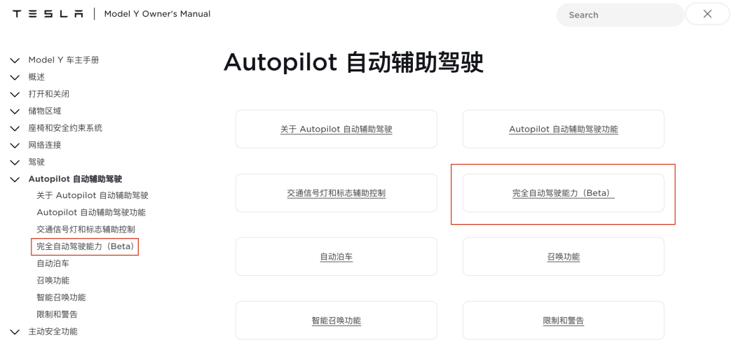 因为就在这条消息出现几天后,11月22日特斯拉已经开始为欧洲、中国和澳大利亚新车主提供包含FSD测试版信息的用户手册,目前FSD(Beta)的功能已经出现在中国官网发布的车主手册上。
