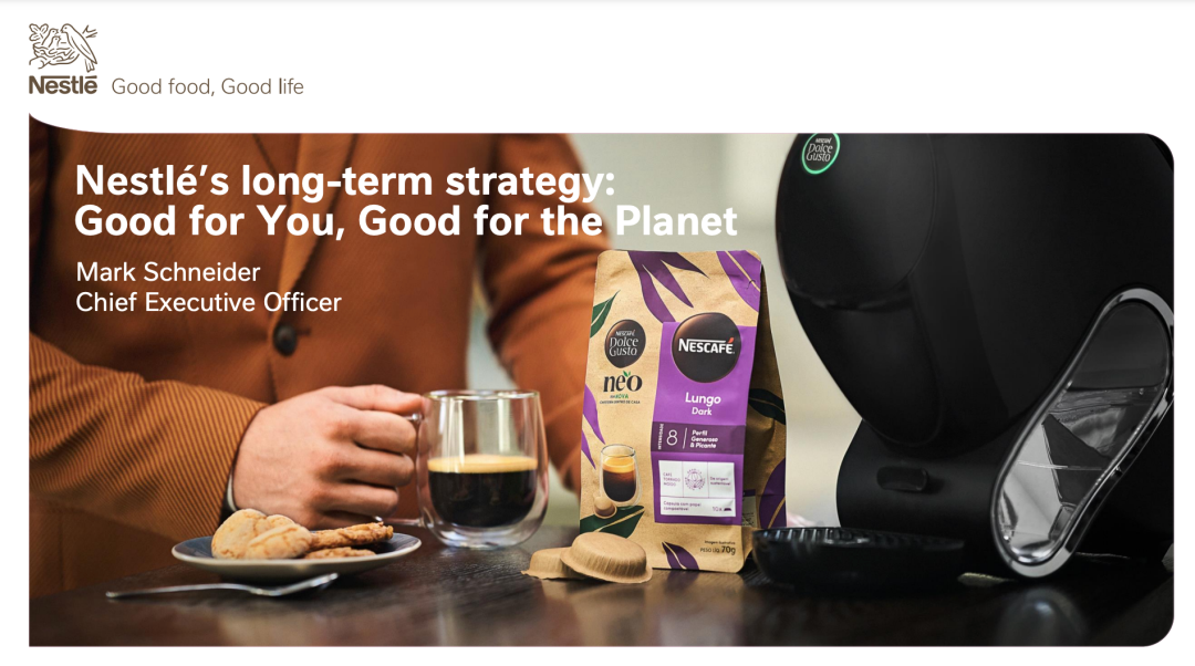 其次,注重差异化的高端创新,这里的典型代表是浓遇咖啡(Nespresso)。然后,作为公司在新兴市场业务的一部分,雀巢要非常注重优质营养产品的价格可负担性。最后,他认为还需要设立一个“意义深远”的可持续发展议程,并引出了“为你美好,为地球美好”这一雀巢长期战略。