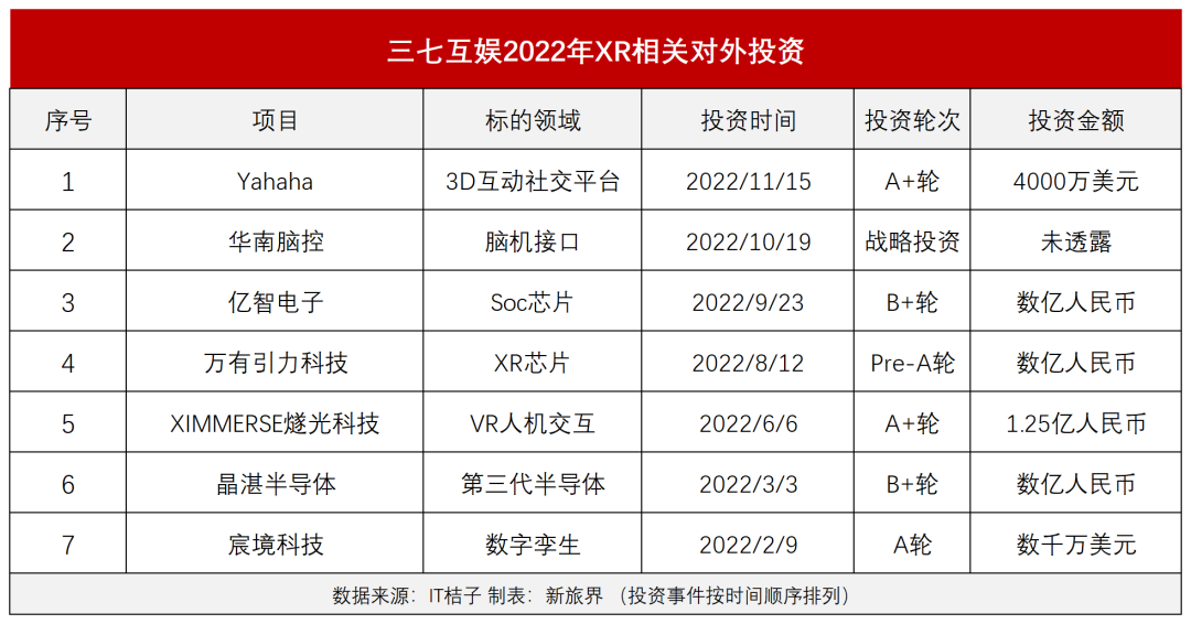 游戏是XR现阶段的核心应用领域。因此,无论外部如何风云变幻,多家游戏企业都在持续投资XR企业。米哈游、三七互娱就是其中代表。