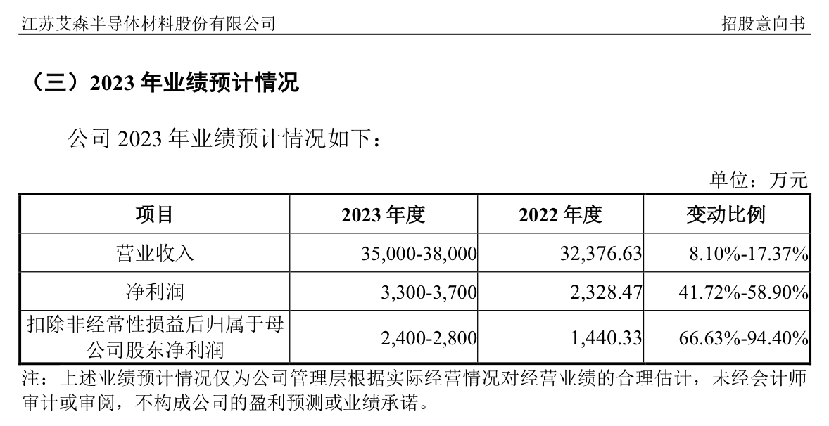 根据招股意向书,艾森股份主要从事电子化学品的研发、生产和销售业务。该公司围绕电子电镀、光刻两个半导体制造及封装过程中的关键工艺环节,形成了电镀液及配套试剂、光刻胶及配套试剂两大产品板块布局,产品广泛应用于集成电路、新型电子元件及显示面板等行业。艾森股份下游客户主要集中在集成电路封装和新型电子元件制造领域,涵盖了长电科技、通富微电、华天科技、日月新等国内集成电路封测头部厂商以及国巨电子、华新科等国际知名电子元件厂商。2023年上半年艾森股份的营业收入1.54亿元,净利润1111.86万元。2023年上半年艾森股份研发投入占营业收入比例为8.83%。