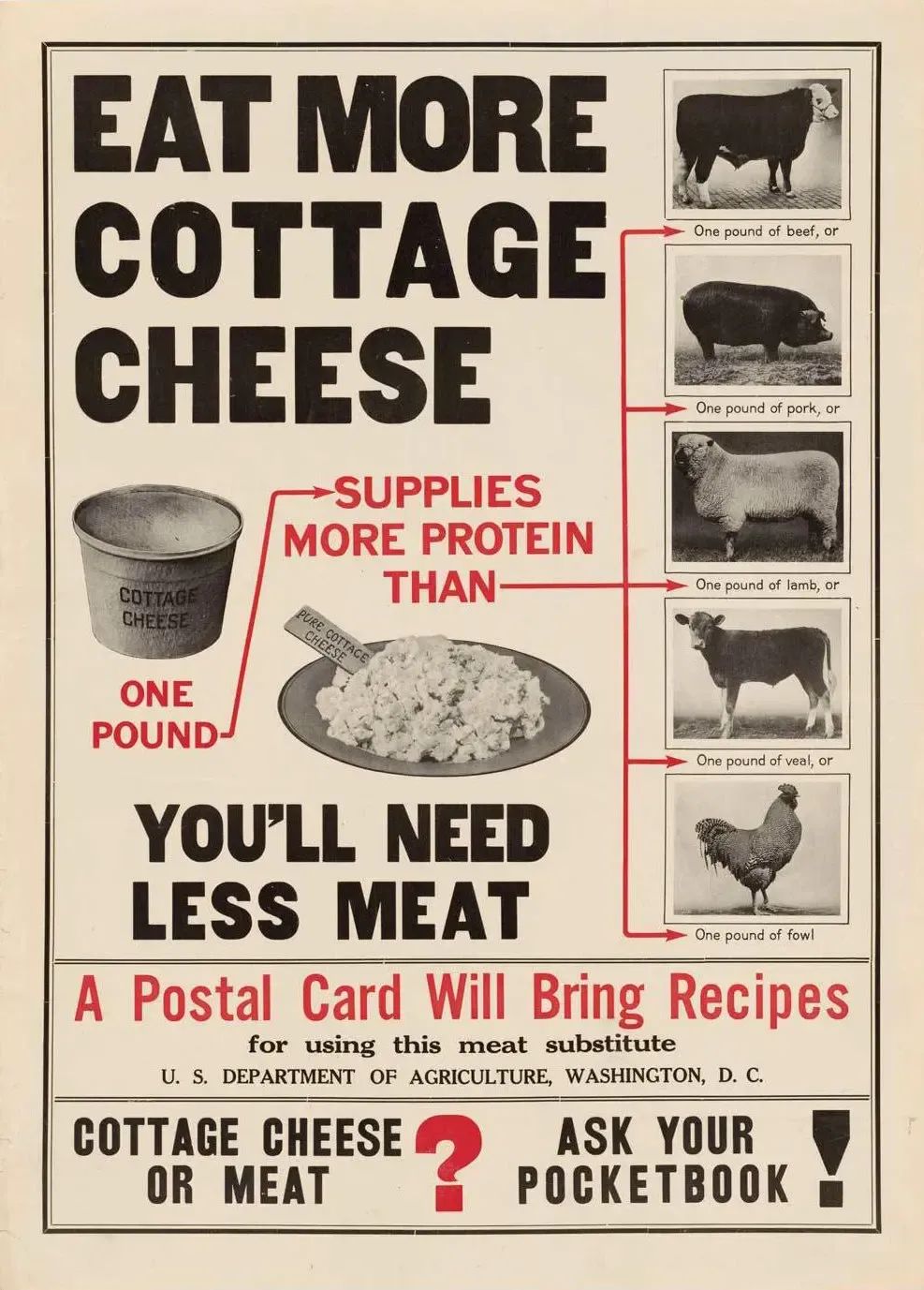 一战期间,官方宣传农家奶酪是出色的蛋白质替代品;减肥人士将它加入自己的减肥食谱;在20世纪70年代中期,每个州生产商每年会生产超过10亿英镑的农家奶酪[1]。