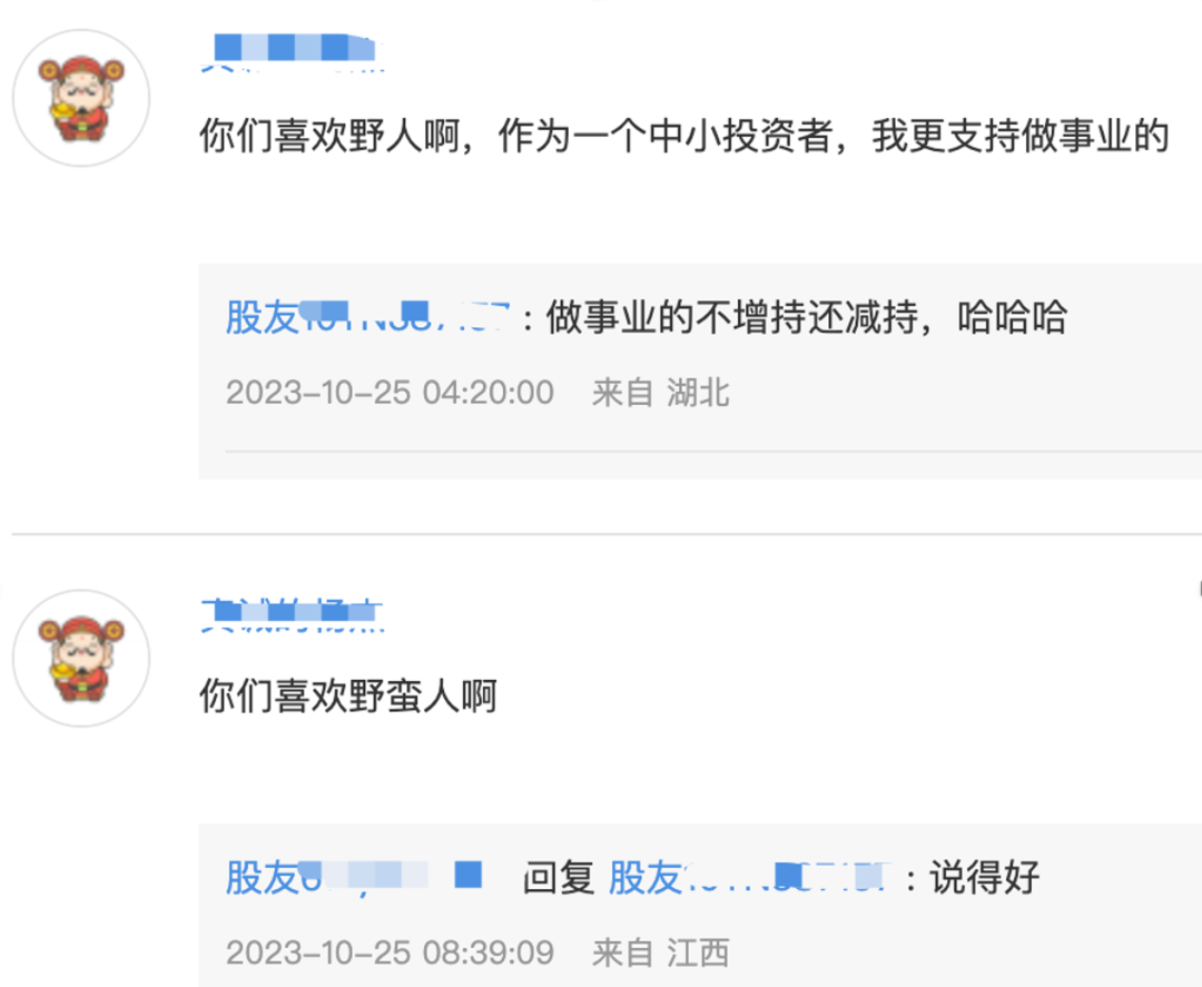 有投资者直言:“你们喜欢野蛮人啊,作为一个中小投资者,我更支持做事业的。”