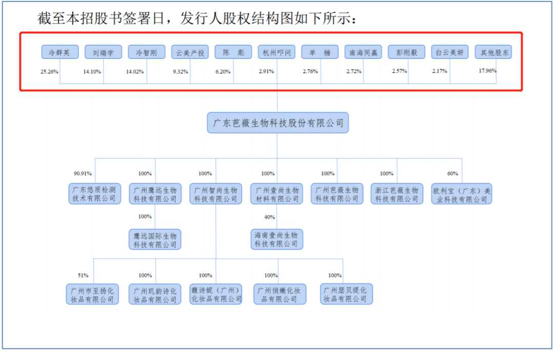 招股书显示,冷群英、刘瑞学夫妻二人合计持有芭薇股份39.36%的股份,为公司控股股东、实际控制人。