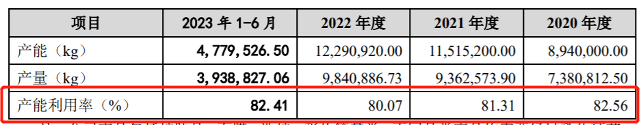 但芭薇股份的化妆品产能利用率并不充足。2020年-2023年上半年,公司产能利用率分别为82.56%、81.31%、80.07%和82.41%;2020年-2022年期间下降2.49个百分点。