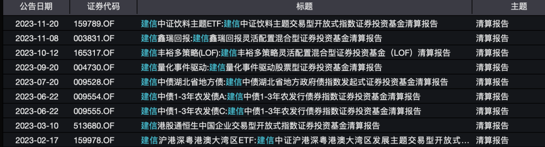 据wind数据显示,年内建信基金已经清盘了8只“迷你基”产品,除了建信中证饮料ETF外,还有建信港股通恒生中国ETF、建信中证沪港深粤港澳大湾区发展主题ETF、建信中债1-3年农发行债券指数、建信湖北省地方政府债指数、建信量化事件驱动股票、建信丰裕多策略混合(LOF)以及建信鑫瑞回报灵活配置混合,累计清算规模约为3.3亿元。