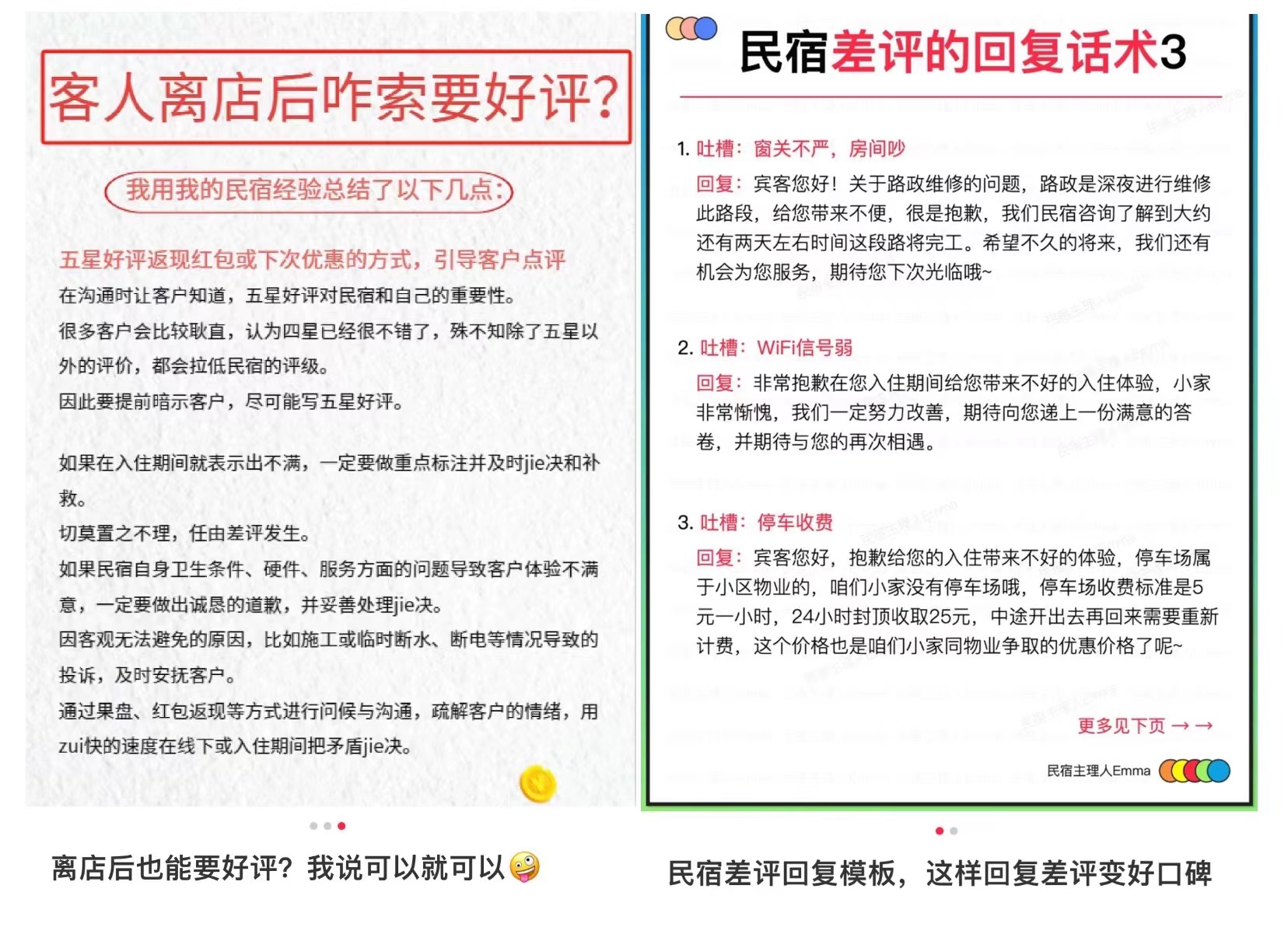 虽然有多重评价体系,维护好评论就能吸引到更多客人似乎已经成为了行业内的默认规则,如何索要好评和删除差评也成为了民宿经营者的必修功课。