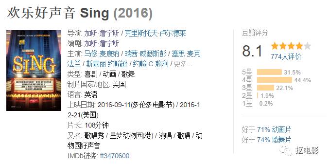 这次还真是没办法说你们歪楼了,因为它真的就是关于唱歌的电影,欧美明星大联欢,动物版好声音的节奏。