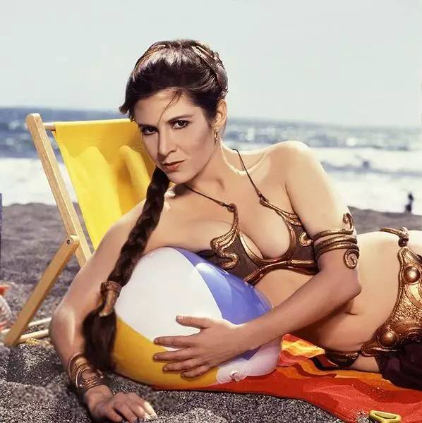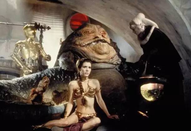 在星战第三集中,莱娅公主被黑社会老大贾巴俘作女奴,身穿金色比基尼出场的她亮瞎了万众少男。并成为了伴随他们一生的终极幻想。