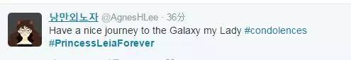 “凯丽·费雪,我的童年偶像,在我心里,你永远闪亮。”