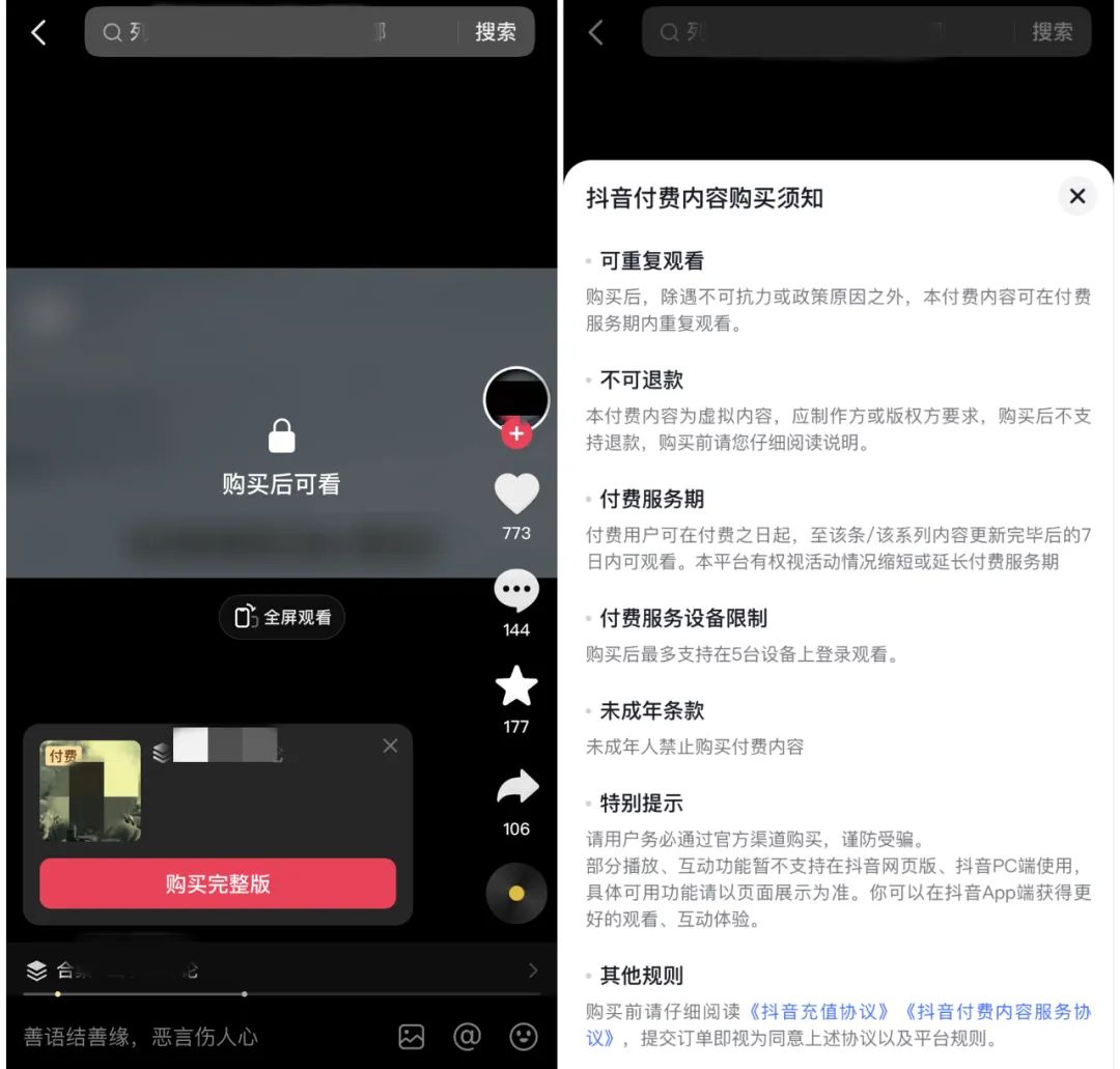 为保护用户与创作者的权益,抖音此次在内测付费短视频时就已表明,创作者无法删除付费内容,付费内容也不能通过本机录屏。