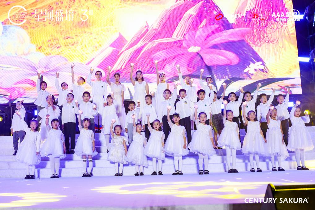 发布会伊始,35个小朋友登台献唱,他们是深圳各个星河社区的小业主,代表了星河35载荣耀征程,与城市共筑未来。以他们最纯净自然的声音,最真挚的情感齐唱《星辰大海》。伴着悠扬欢快的音乐与孩子们嘹亮的歌声,现场掌声如潮。