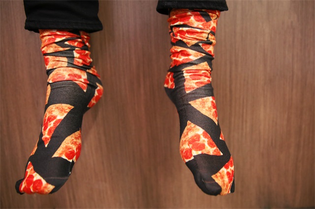 为了庆祝新年,这家披萨外卖连锁品牌专门找来了时尚设计师Charlotte Denn操刀,正式在英国推出了这款奇葩的服装。这款使用了特殊面料的家居服,为了方便你一遍窝在沙发上看电视一边进食,采用了蓝底披萨印花的设计,花哨的图案,掉在上面多少污渍都看不出来了,而且方便擦拭。