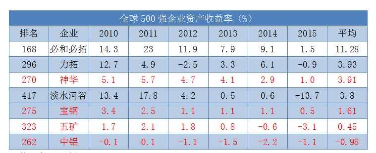 对七家国内外矿企6年内的资产收益率进行比较,如下图所示。
