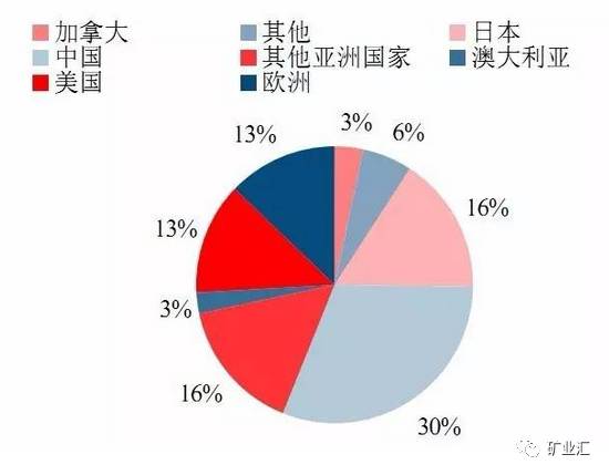 力拓营业收入30%来源中国,16%来源于日本,16%来源于其他亚洲国家。