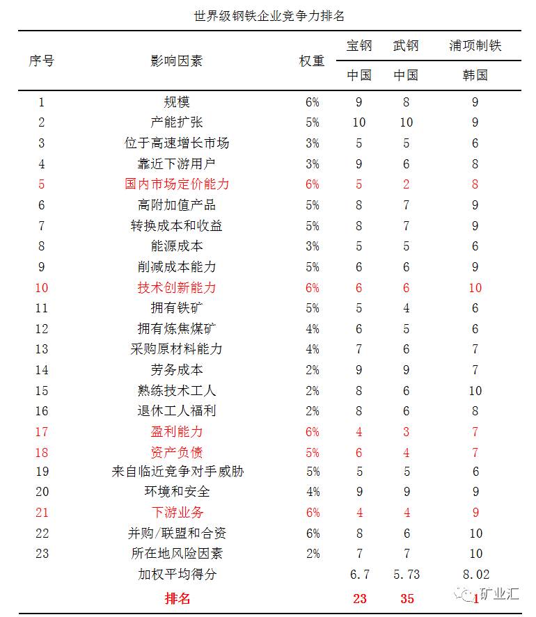 宝钢作为国内竞争力最高的钢企,其世界排名只有23位,与宝钢合并重组的武钢排名第35位,韩国浦项已经连续七年蝉联世界钢企竞争力榜首位置。