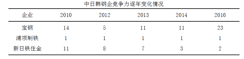2016年,世界钢动态公司(WSD)发布最新一期“世界级钢铁企业竞争力排名”,宝钢和武钢在国内市场定价能力、技术创新能力、盈利能力、资产负债、下游业务方面远远落后于浦项制铁。
