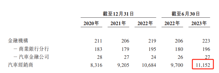 截至2023年6月30日,公司与11152家汽车经销商达成合作,较2020年的8316家增长34.10%。