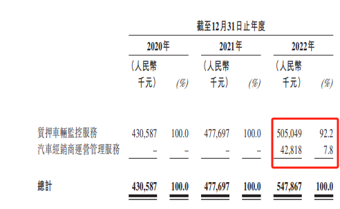 从收入来看,长久股份业务主要分为质押车辆监控服务以及汽车经销商运营管理服务两部分。其中,质押车辆监控服务是公司核心业务。2022年,长久股份该业务实现收入5.05亿元,占公司收入比例为92.2%。