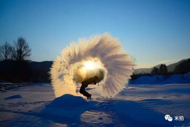 2016年1月25日,吉林农业大学的清湖,几位大学生模仿网络上的“泼水成冰”进行了实验,他们用暖瓶装着刚刚烧开的热水,趁着阳光比较好的时候,成功的进行了实验。