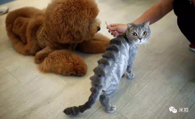 2016年6月19日,中国台湾,宠物商店内,一只猫咪背部皮毛被修剪成脊椎形状。(编少:这是一只稀有的独角兽·猫!请好好爱护它!)