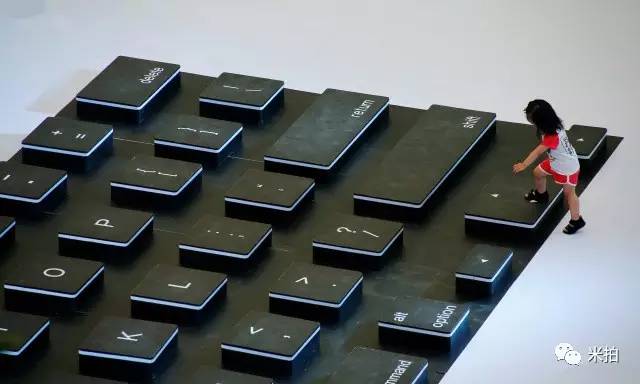 2016年7月28日,北京,购物中心举办的促销活动上,一个孩子爬上巨大的电脑键盘模型。(编少:这么好的东西不申报吉尼斯浪费了)