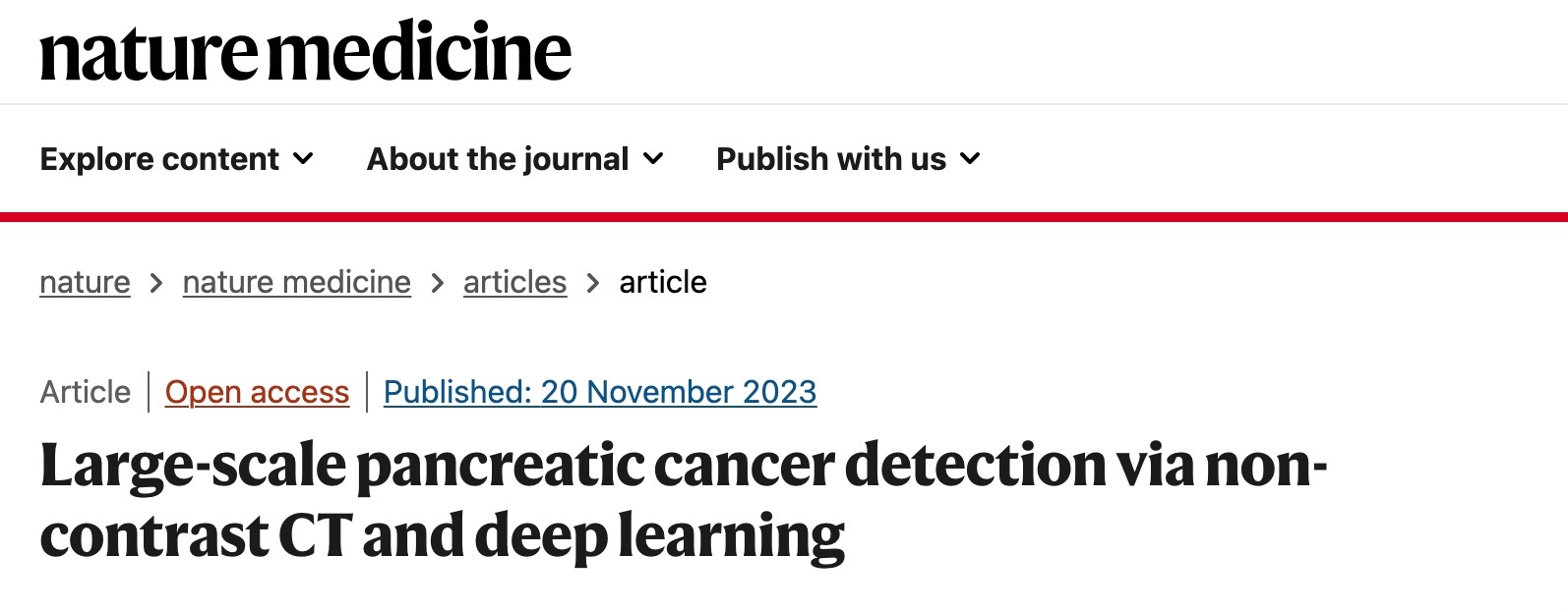 达摩院医疗AI团队负责人、IEEE Fellow吕乐表示,这项研究是一个重要的里程碑,在临床上证实“平扫CT+AI”的癌症筛查技术路径的可靠性。达摩院医疗AI团队正在联合全球多家顶尖医疗机构,利用AI技术探索低廉、高效的多癌筛查新方法,希望能让人们通过一次平扫CT就查出多种早期癌症。目前,这项工作已经在胰腺癌、食管癌肺癌、乳腺癌、肝癌、胃癌、结直肠癌等七种高发癌症上取得阶段性进展,研究成果先后登上Nature Medicine、NatureCommunications等医学期刊及CVPR/MICCAI/IPMI等AI顶会。