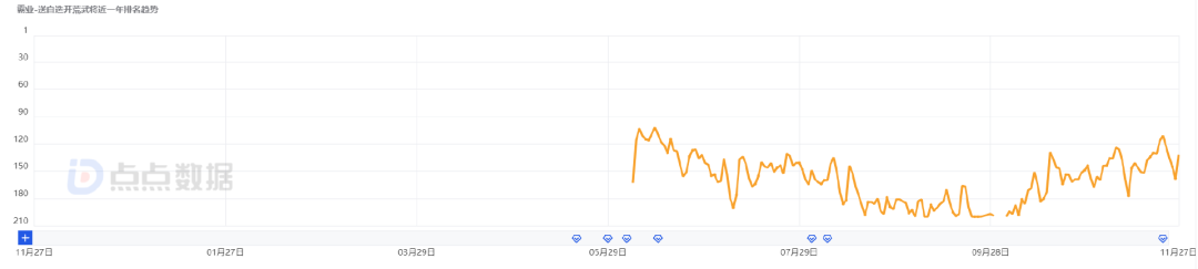 3、《霸业》表现反转,已成为三国SLG腰部。DataEye研究院注意到,十月国庆假期后,三七加大对《霸业》的投放,该游戏也一度进入了iOS畅销榜TOP100,有V字反转的趋势。目前该游戏是三七国内市场苹果端表现最突出的SLG。要知道,今年能在网易《率土》灵犀《三战》《三棋》以及腾讯+星辉《战地无疆》的多重威胁中逆势增长,并非易事。
