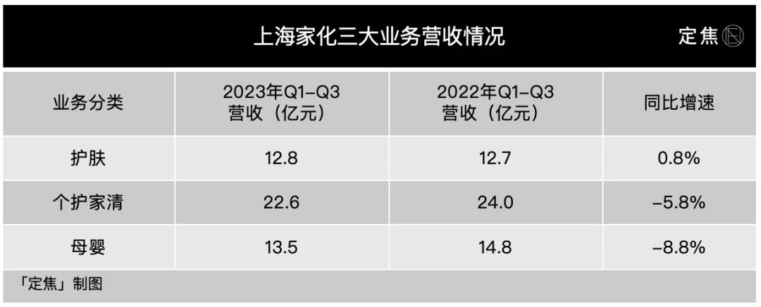 今年以来,虽然上海家化的护肤线业绩重回增长,但另外两个板块还需时间恢复,因此,集团整体的营收表现有所下滑。