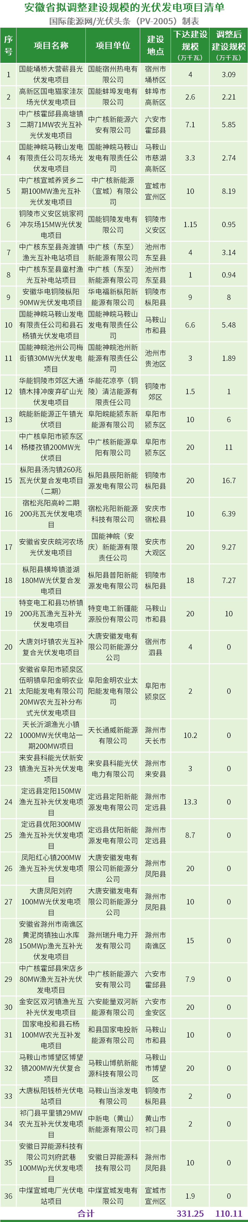其中下调规模项目共19个,总计下调规模61.14万千瓦。在本次清单调整中取消项目共17个,总计规模160万千瓦。