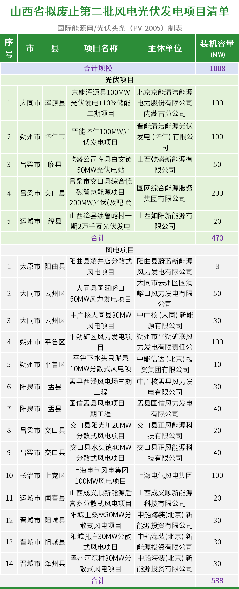 山西:取消光伏470MW+风电538MW