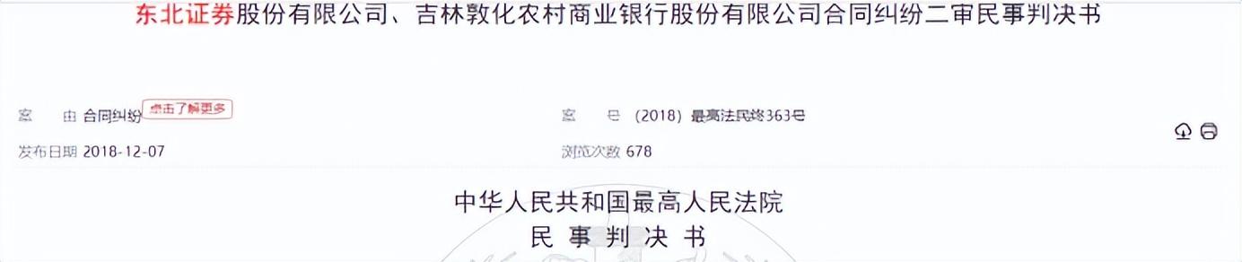 7年前一起旧案,迎来一审判决,也牵出东北证券(000686.SZ)与敦化农商行的恩怨纠葛。