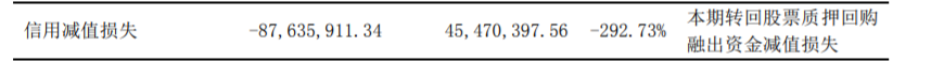 尽管前三季度投行业务净收入大幅增长,但不容忽视的是其信用减值损失为-8763.59万元,而上年同期为4547.04万元,主要原因是转回股票质押回购融出资金减值损失。