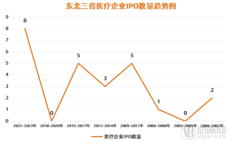 正如前文所述,如果以3年为一个时间观察期,东北在2021-2023年的时间期里正迎来医疗IPO收获期:8家企业成功登陆二级市场,处在历史的高点。