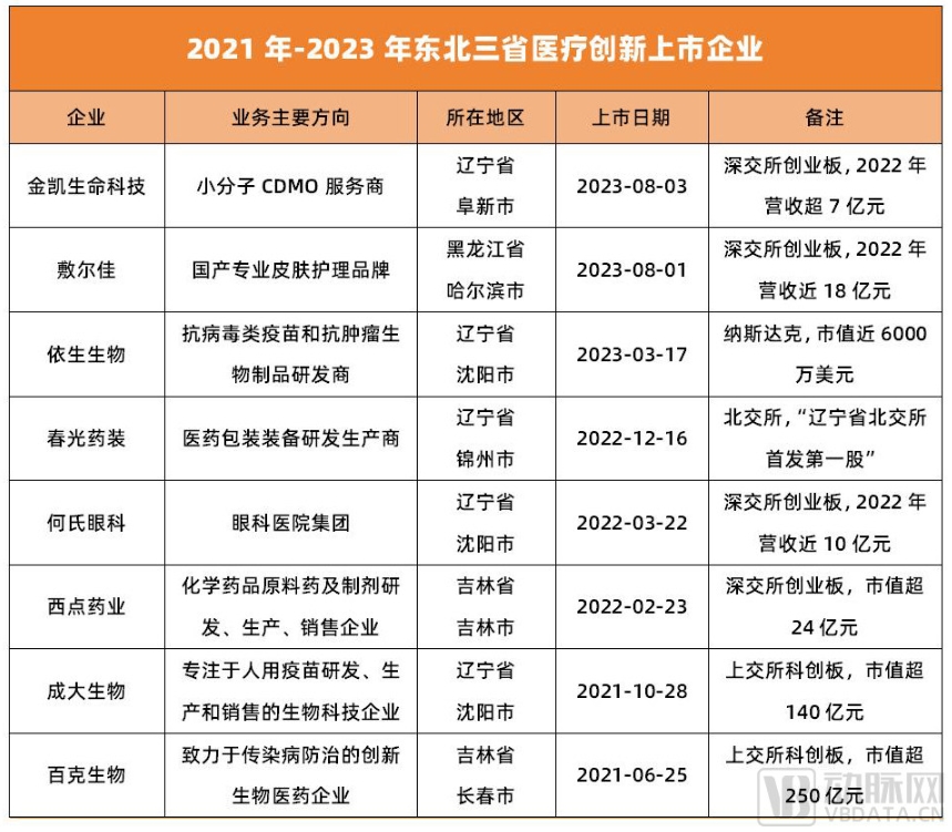 (近3年东北三省上市的医疗创新企业 数据来源:动脉橙数据库)