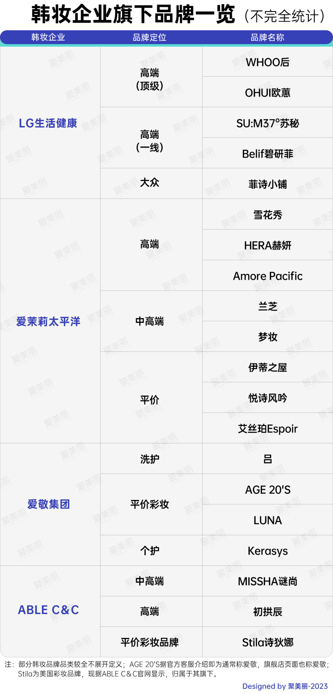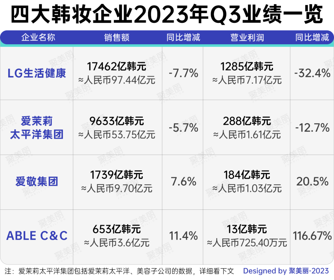 参考资料:LG生活健康财报、爱茉莉太平洋财报、爱敬集团财报、ABLE C&C财报